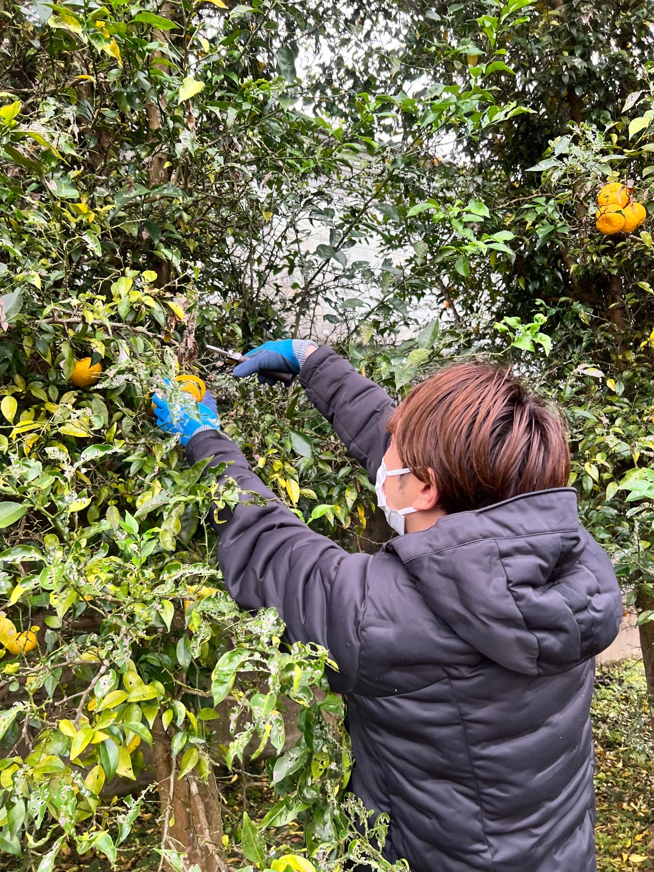今回の収穫は、ご協力頂いております、行政、まちづくり協議会、アンバサダーの皆様の取組で、柚子染めやモイストポプリに使う為に収穫に来ております。
